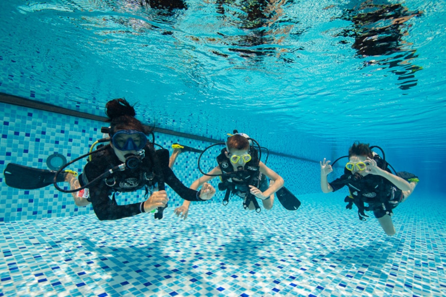 - Practice using the dive equipment and how it works, before going into the pool.