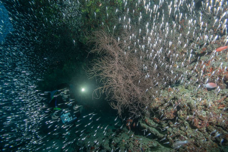 As an added bonus, only when night diving can you experience the beautiful and fascinating natural phenomenon of bioluminescent plankton, where thousands of tiny plankton glow when a chemical reaction that takes place inside them causes them to light up.