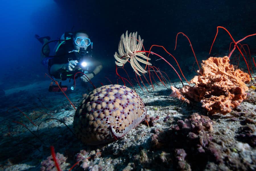 While night diving you will observe different marine creatures, such as unique crustaceans and mollusks you never knew existed, as well as unique behaviours from animals such as lionfish, octopus and turtles.